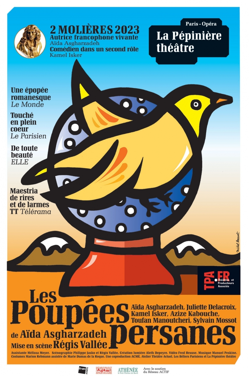 Inspirée par ses origines iraniennes, et de toute la complexité et la douleur de cet héritage, l’auteur Aïda Asgharzadeh a écrit « Les Poupées Persanes », elle y joue aussi avec une sincérité bouleversante. La pièce, déjà Moliérisée (Molière de l'auteur francophone vivant, Molière du comédien dans un second rôle pour Kamel Isker) a dépassé la 220ème représentation. La scène du Théâtre de la Pépinière réunit une jeune bande de comédiens et comédiennes (d’origines iraniennes ou pas) particulièrement dynamique et concernée par un sujet qui continue à faire écho à notre actualité. Cependant, ne vous méprenez pas, malgré le sujet traité, la pièce demeure un pur divertissement.