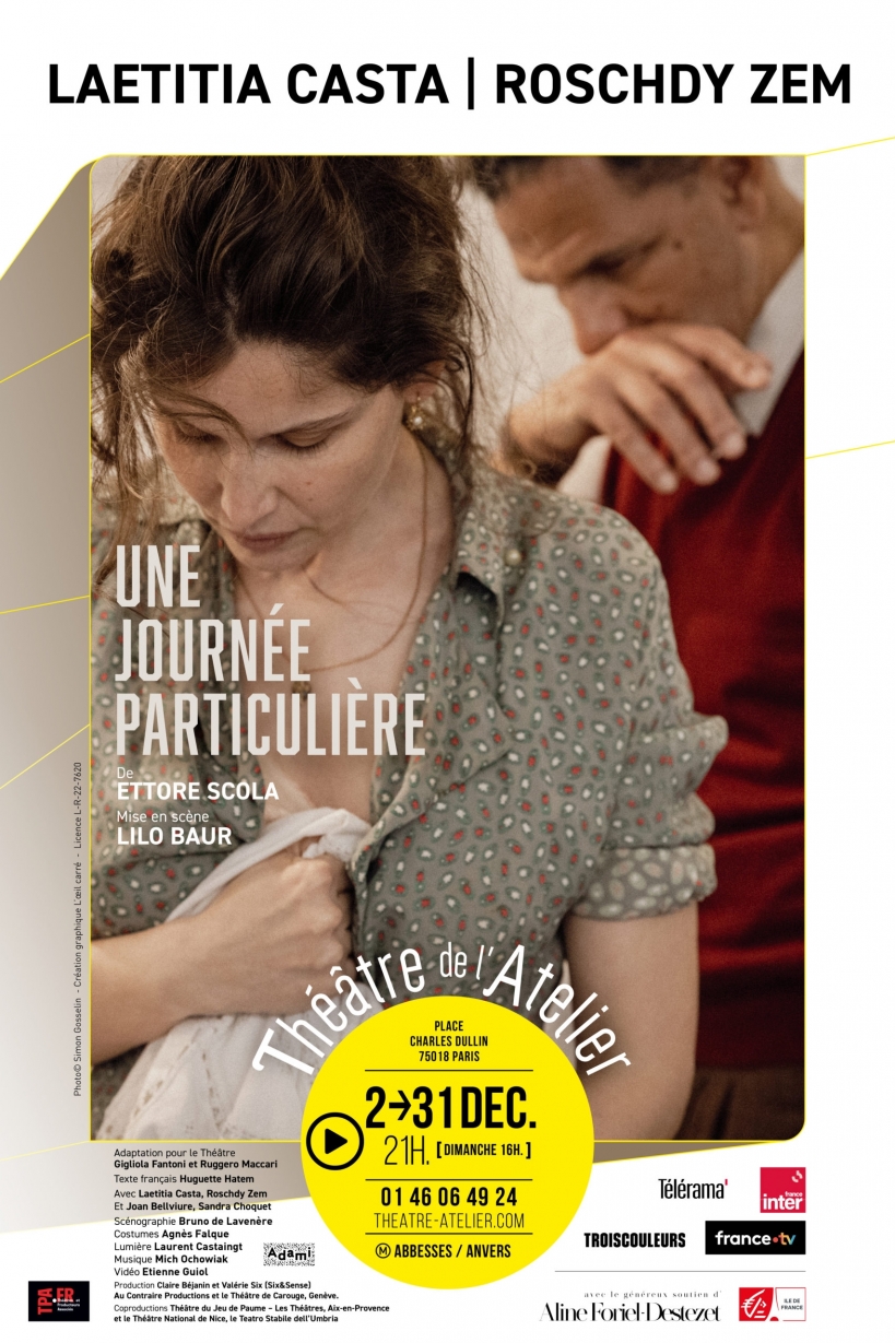 Rome, 6 mai 1938. Hitler rencontre Mussolini. Une parade militaire rameute la population pour célébrer l'entente fasciste entre l'Allemagne et l'Italie. Dans un lieu déserté de ses habitants, la rencontre d’une femme au foyer, délaissée et éreintée, et d‘un homme dont l’homosexualité est condamnée par le régime totalitaire, révèle une humanité terriblement douloureuse, vidée de sens. L’histoire « Une journée particulière » voit le jour en 1977 au cinéma, Ettore Scola signe un chef d’œuvre. Sophia Loren est une tragédienne fatale et Marcello Mastroianni est d’une délicate fantaisie, le duo est sensible, éblouissant.